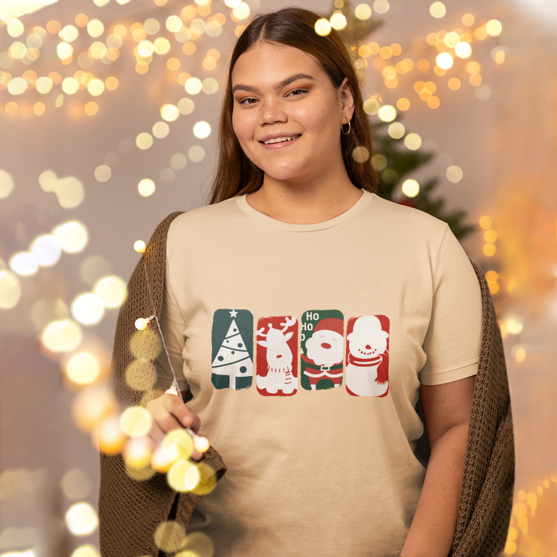 Cute Christmas Characters T-Shirt - Santa, Reindeer, Snowman & Tree Holiday Tee