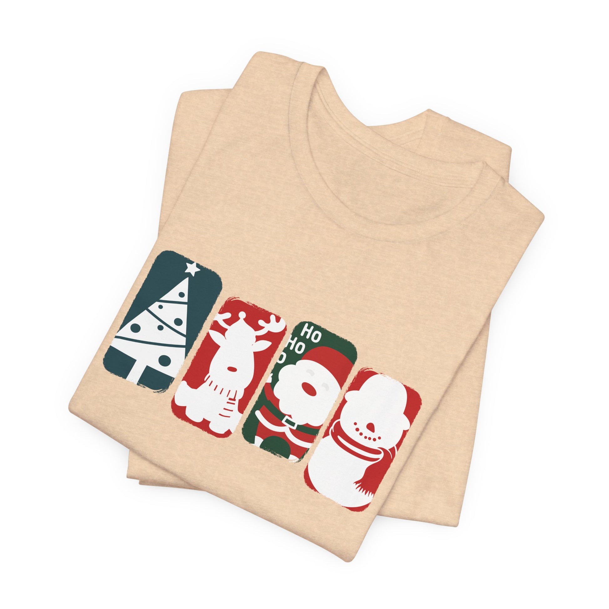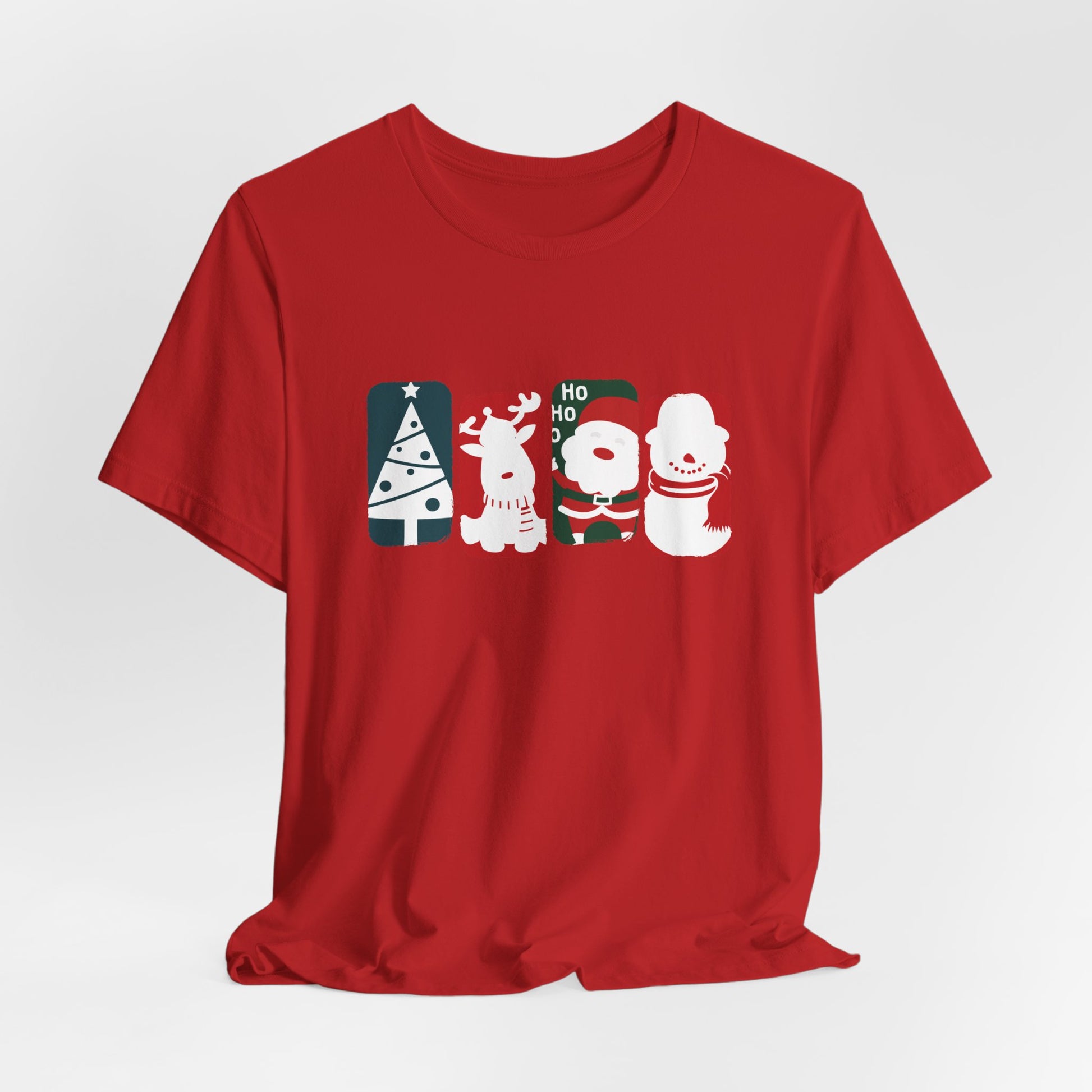Celebrate the holidays in style with this cute Christmas characters t-shirt featuring a festive mix of Santa Claus, a reindeer, a snowman, and a Christmas tree. Designed with bold holiday colors and a fun modern look, this Christmas tee is perfect for holiday parties, family photos, school events, and cozy winter outfits. A great unisex option for adults, teens, and kids who love cheerful Christmas designs.