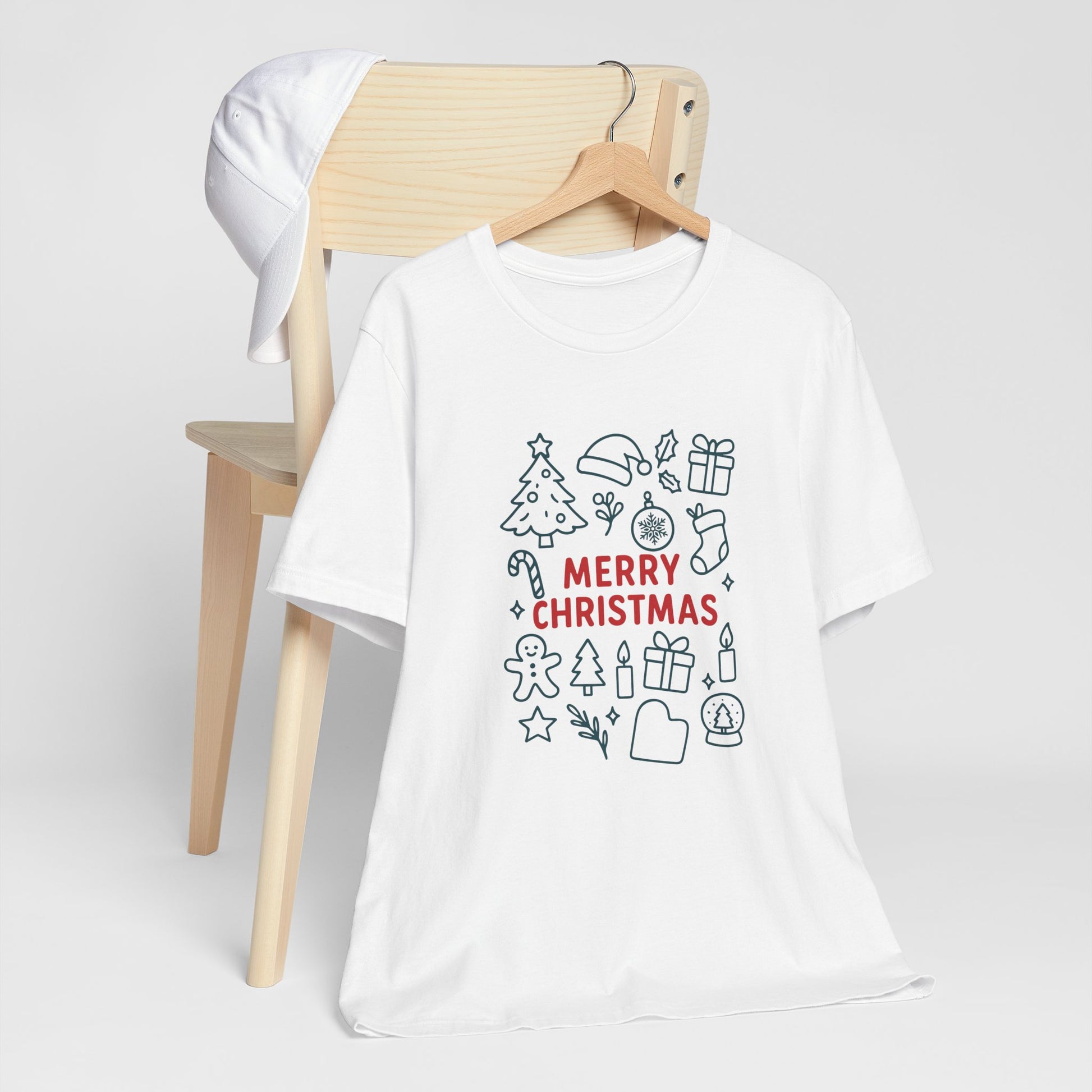 Merry Christmas Icons T-Shirt – Cute Minimalist Christmas Line Art Holiday Tee