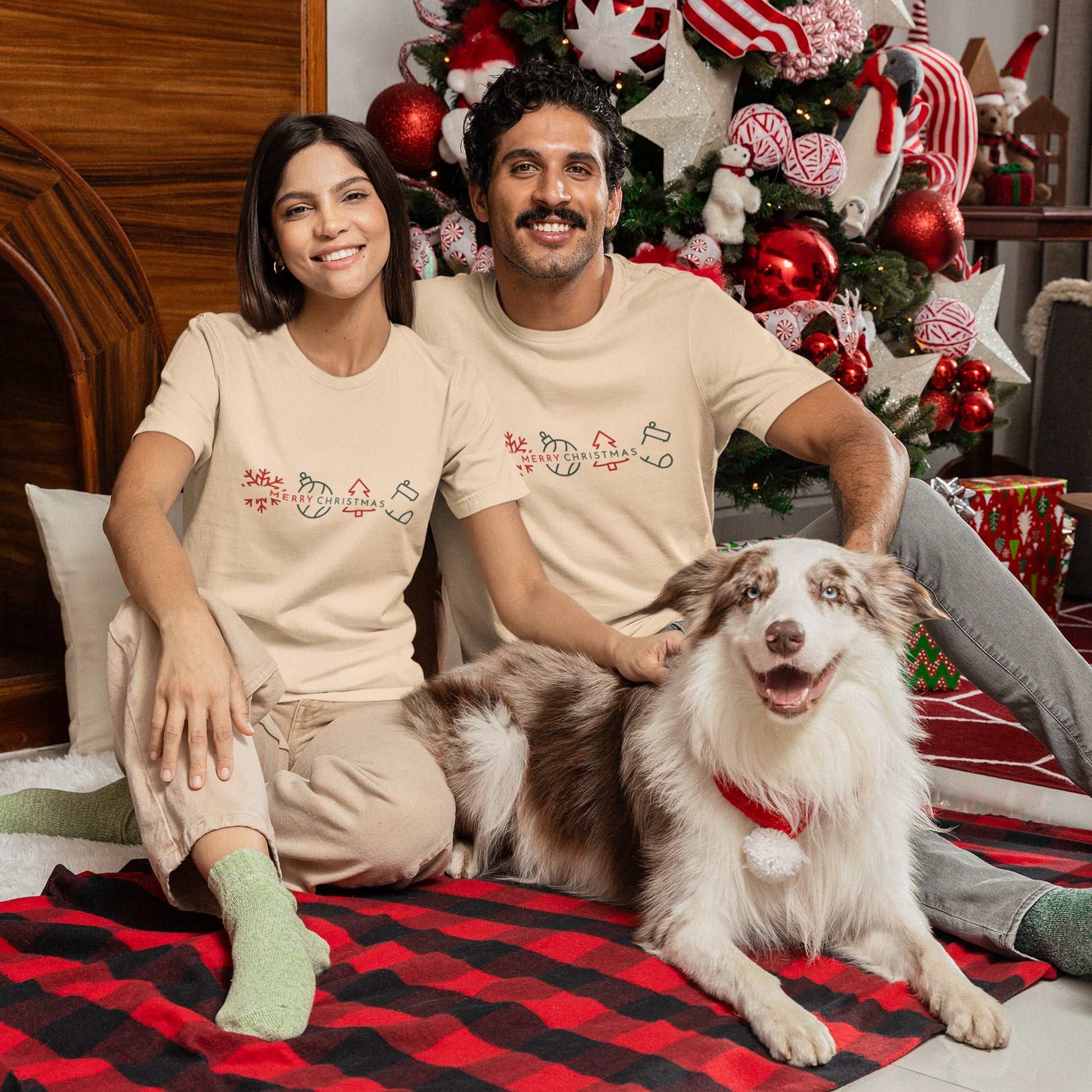 Minimalist Merry Christmas Shirt – Modern Line Art Holiday Icons Tee