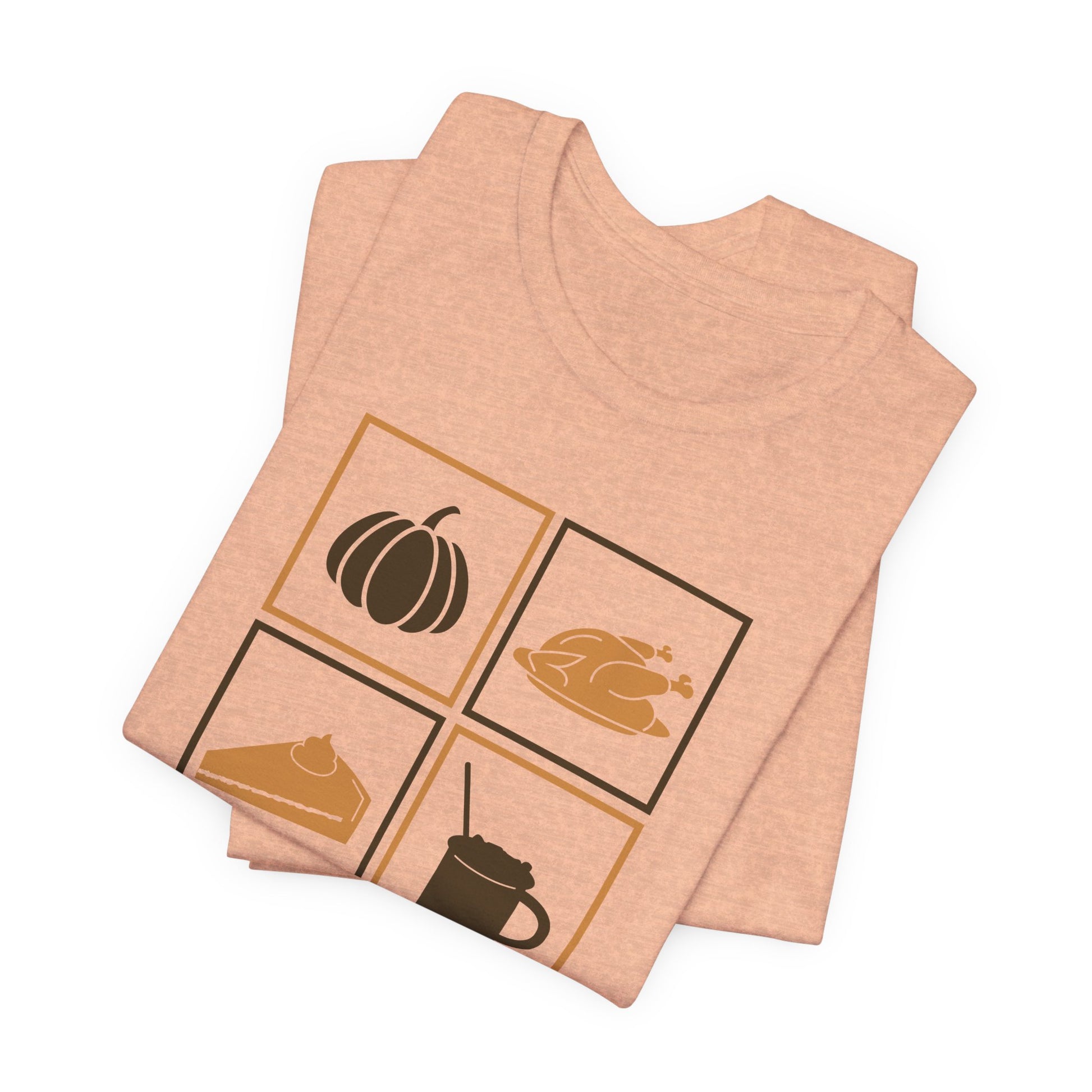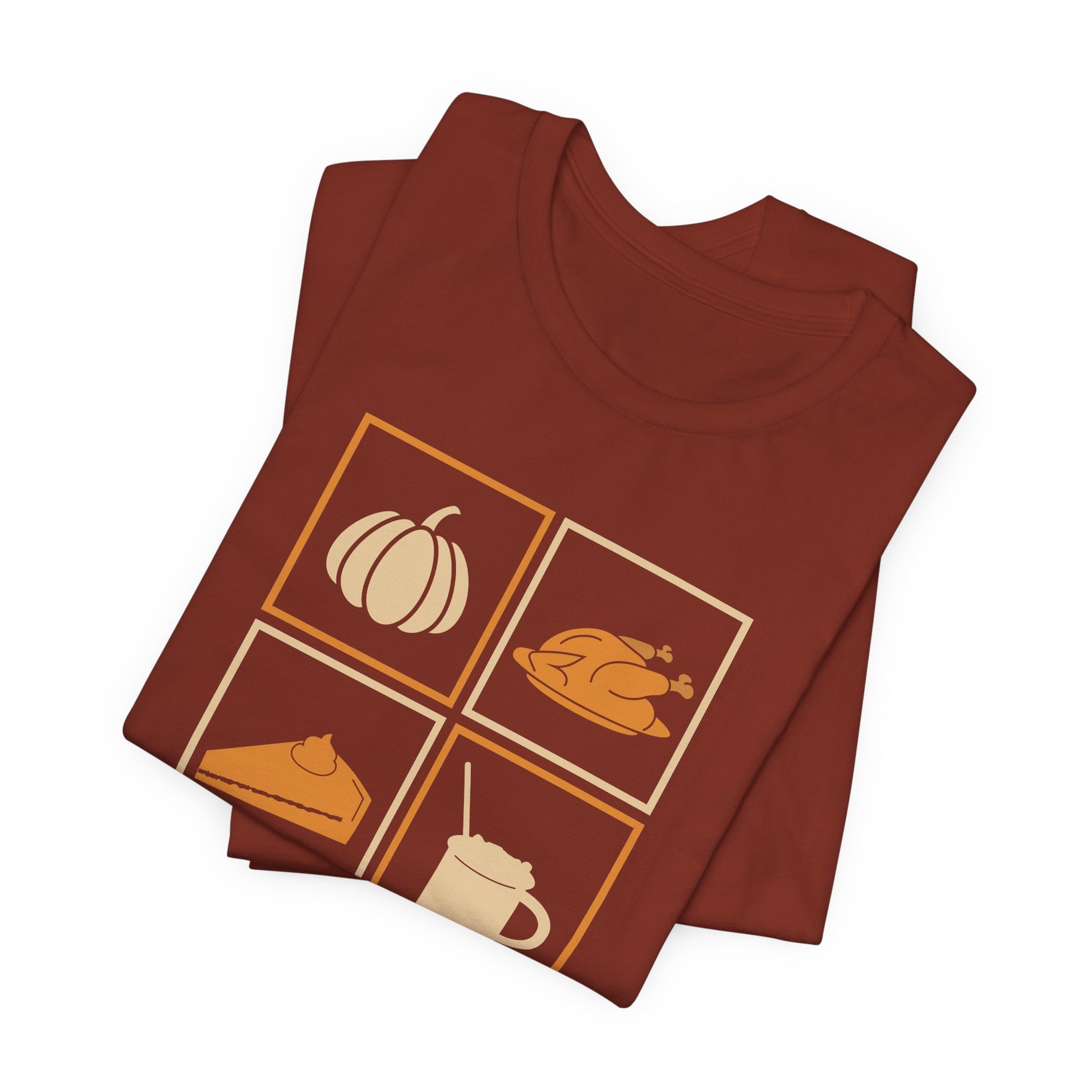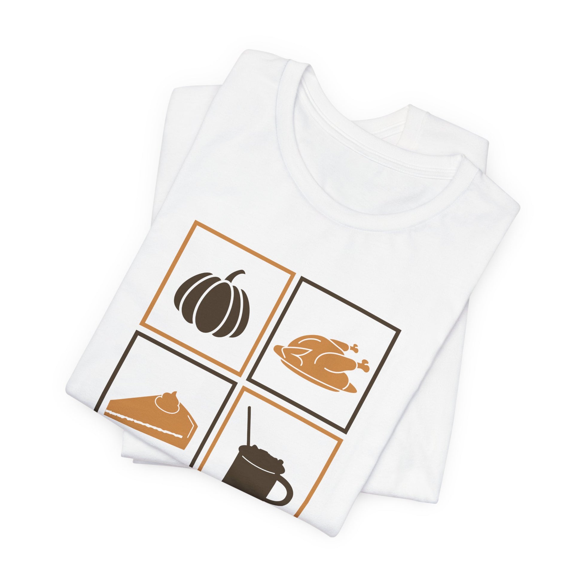 Celebrate gratitude and the warmth of Thanksgiving with our Say Thanks T-shirt. Featuring a clean and cozy design with classic fall icons - a pumpkin, turkey, pie, and warm drink - this shirt captures the spirit of the season in a simple and charming way.
