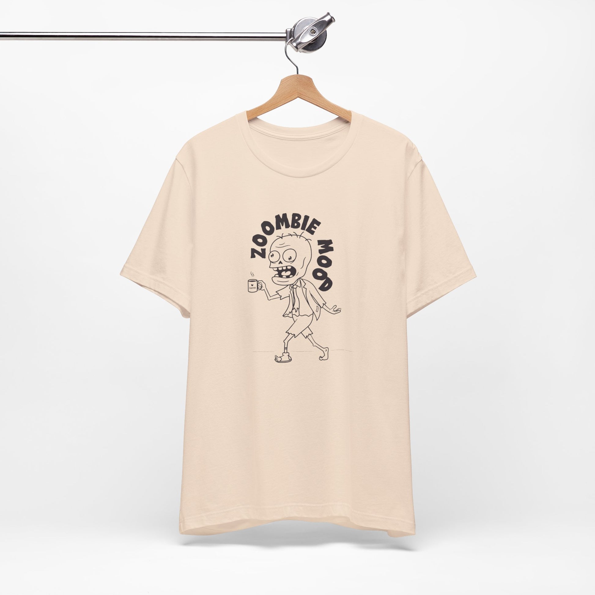 Start your day like the true coffee zombie you are with our “Zoombie Mood” t-shirt! Featuring a fun cartoon zombie clutching his morning coffee, this tee is perfect for caffeine addicts, night owls, and anyone who feels half-dead before their first sip. Wear it to work, casual outings, or just lounging around in ultimate lazy style.